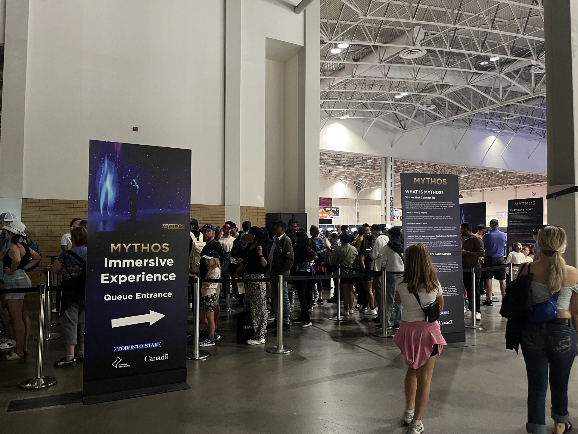 Mythos premiered at the Canadian National Exhibition (CNE) on August 15, 2025, as part of the International Pavilion, the experience was bundled within the overall CNE ticket price, and it quickly became a highlight of the fair.